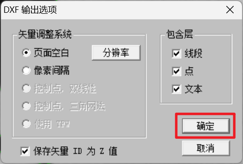 4.输出.dxf文件,依次点击:文件-输出矢量-文件类型设置为DXF文件-默认确定;