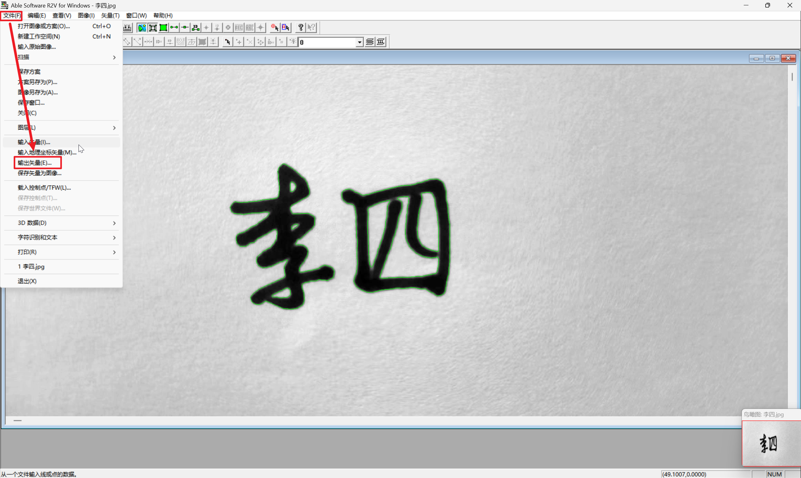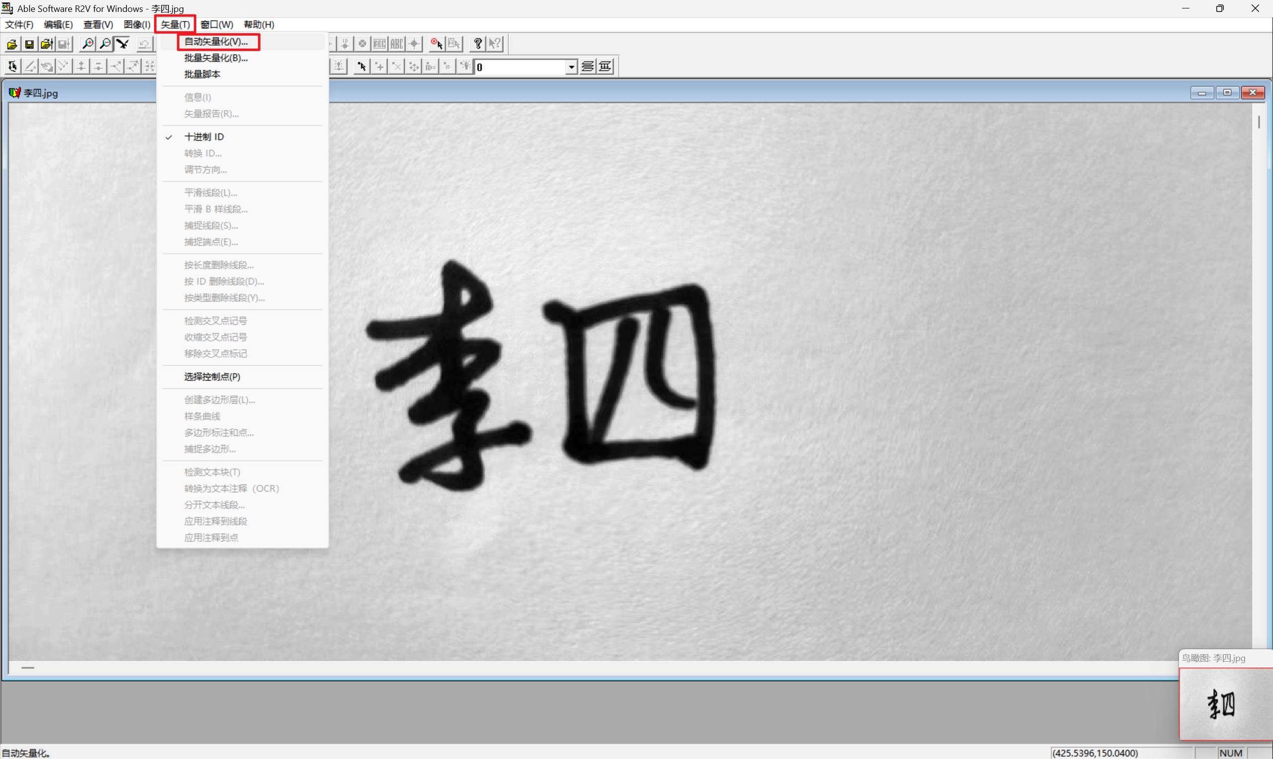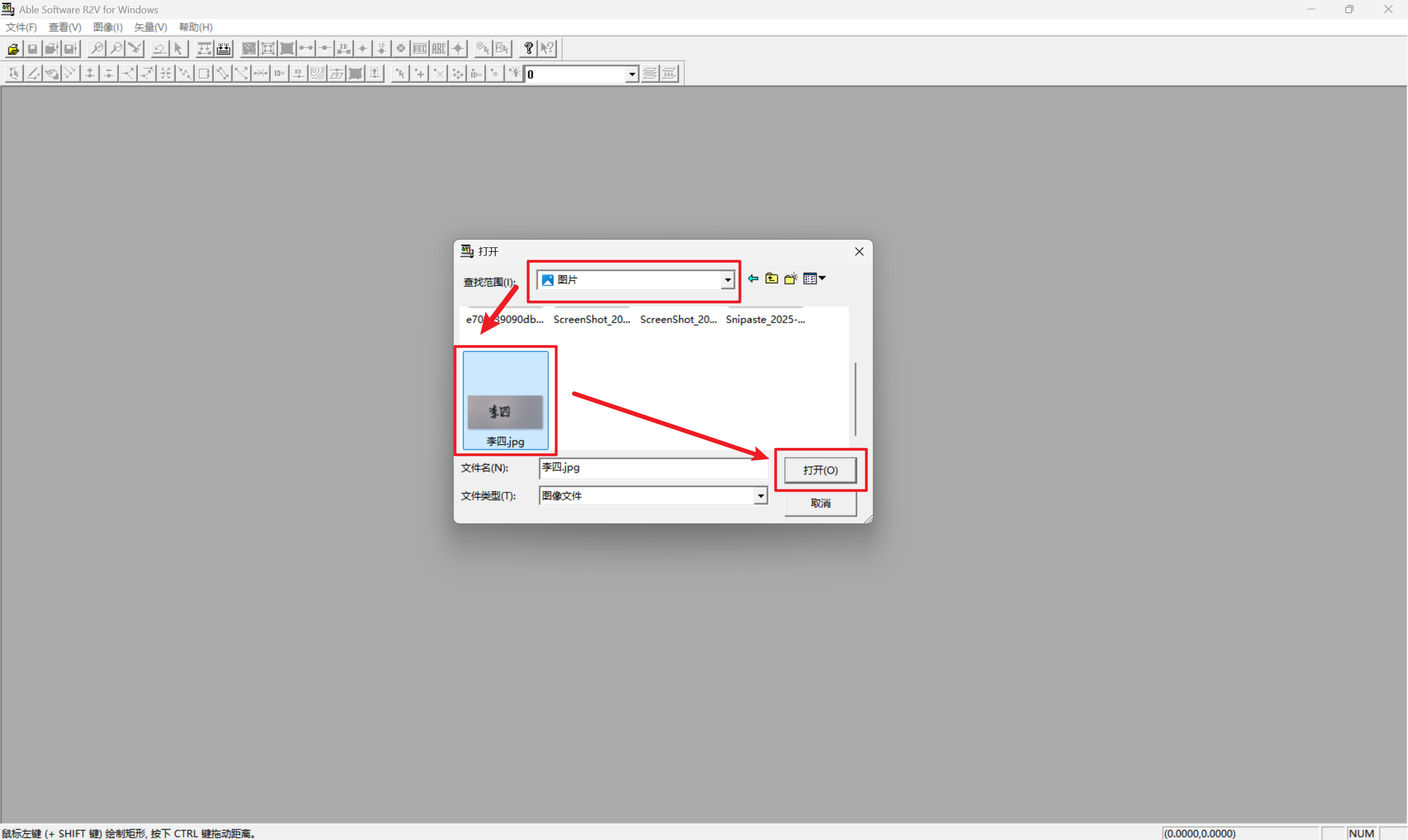 双击打开R2V.exe软件,在文件夹中找到并打开上传的签名图片;